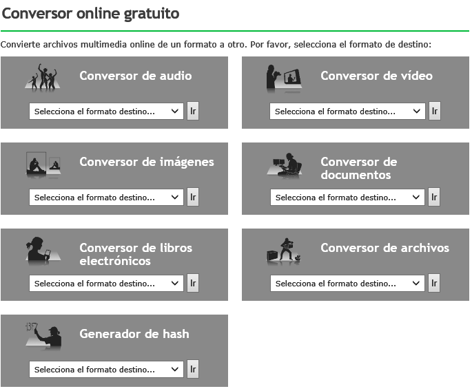 Principalmente buscamos alguna página que nos permita convertir documentos, al formato que queramos. En este caso se eligió https://www.online-convert.com/es